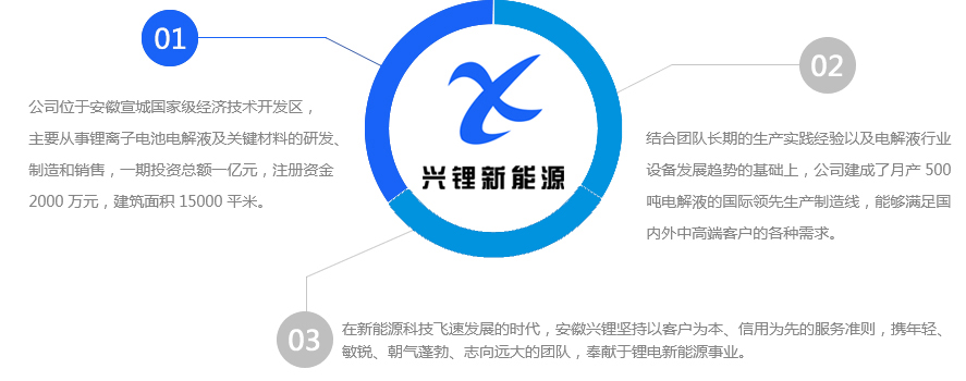 興鋰新能源,是一家專(zhuān)業(yè)從事鋰離子電池電解液及相關(guān)材料的研發(fā)、生產(chǎn)、銷(xiāo)售與服務(wù)的高新技術(shù)企業(yè),目前擁有安徽宣城和貴州凱里兩個(gè)生產(chǎn)基地。公司主要生產(chǎn)鋰離子電池電解液,產(chǎn)品被廣泛應(yīng)用于電動(dòng)汽車(chē)、電動(dòng)自行車(chē)、電動(dòng)工具、儲(chǔ)能、3C數(shù)碼電子等各個(gè)領(lǐng)域。公司目前正在研究開(kāi)發(fā)的項(xiàng)目包括匹配高鎳正極的電解液、匹配硅碳負(fù)極的電解液和固態(tài)電解質(zhì)。憑借技術(shù)和成本優(yōu)勢(shì)、良好的品質(zhì)以及售后服務(wù),在廣大客戶(hù)中贏得良好的口碑。公司團(tuán)隊(duì)具有十余年專(zhuān)業(yè)從事鋰電材料研究開(kāi)發(fā)、工藝優(yōu)化、營(yíng)銷(xiāo)服務(wù)的經(jīng)驗(yàn),具有豐富的一線(xiàn)生產(chǎn)、工程設(shè)備管理經(jīng)驗(yàn),具有過(guò)硬的質(zhì)量保證與問(wèn)題解決能力,具有創(chuàng)新的服務(wù)意識(shí)。先進(jìn)的管理理念,精良的工藝裝備,高素質(zhì)的員工隊(duì)伍,較高的生產(chǎn)效率,較低的生產(chǎn)成本,把客戶(hù)的需求落實(shí)到生產(chǎn)流程的每一個(gè)環(huán)節(jié)。公司高度重視科技創(chuàng)新...